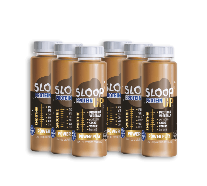 Smoothie-ul SLooP Up Protein Power Play este o băutură cu 6.3g proteină vegetală per sticlă, creată pentru zilele active și momentele în care ai nevoie de energie constantă.